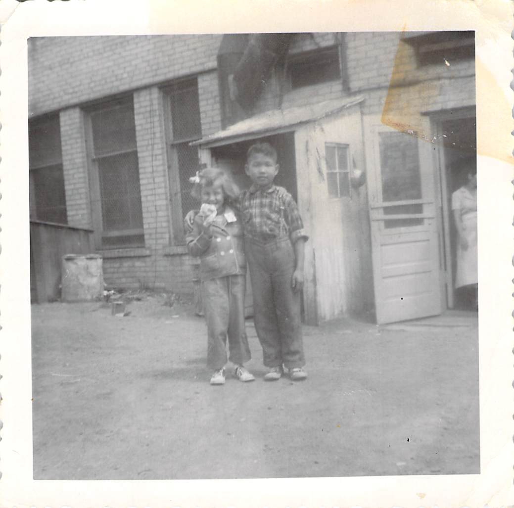 Lil’s mother is standing in the doorway; you can see half of her. , Su-lin, is likely inside and Chieh’s three other siblings are not yet born. You can see that Chieh is a serious young man, while Evil Ivy, in her high-water pants and double-breasted jacket appears to be frivolously enjoying a peanut-butter sandwich.