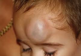 I learned to play football at that school. Not real football just recess football. I was good at it because I could run fast and I was the only kid that could catch when the ball was thrown in the air. I couldn’t throw the ball because it was too big, but Morris could throw. One time he threw the ball to me while I was running fast and I ran straight into the goal post with my face. I had a great purple egg on my forehead. It looked like this:
