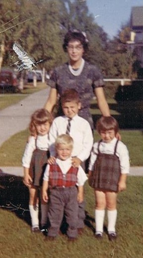 My mother’s friend Gail Dumas and her four kids moved in with us, for a while. Here is my mother with the four Dumas children. Gail is probably taking the picture.